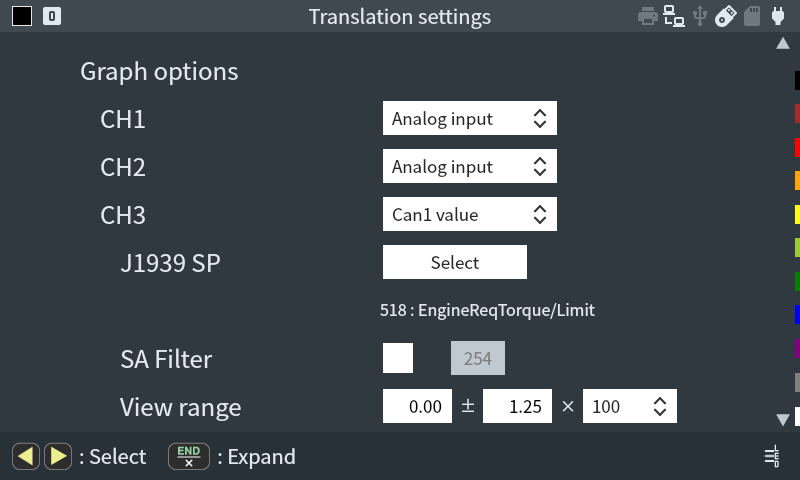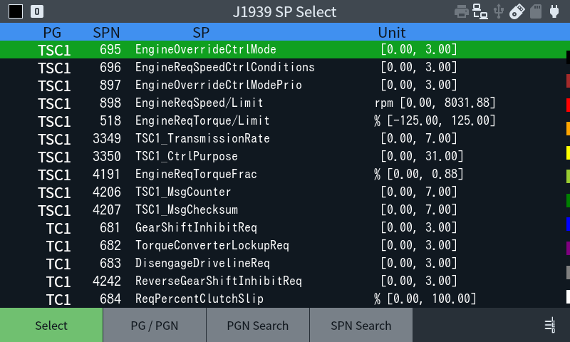 J1939 support has been added to the SB-C2AN's CAN/CAN FD translation function. Unlike the DBC translation function, there is no need to prepare a translation definition file. Approximately 4,000 types of SPNs can be translated and displayed.