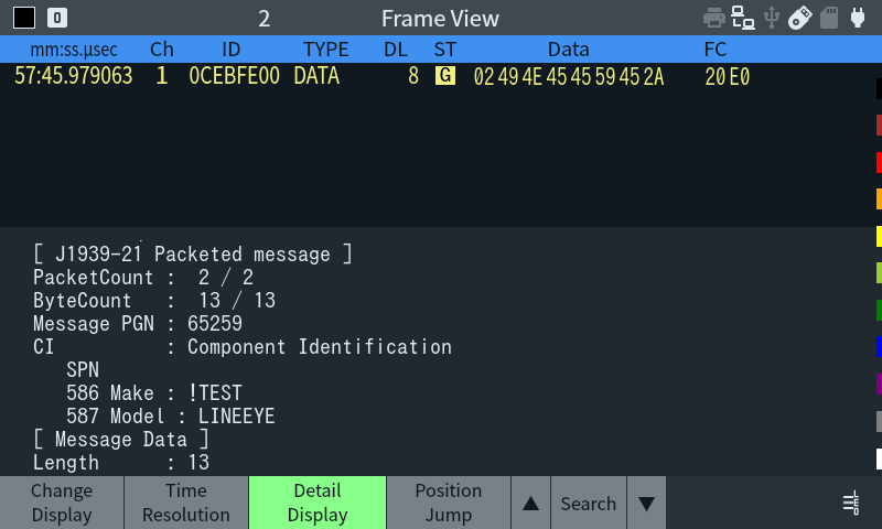 It also supports translation display of TP (Transport Protocol), which transmits more than 9 bytes of data using multiple CAN frames, and J1939-22, an extension of CAN FD.